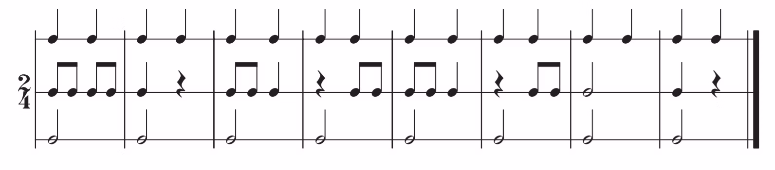 Luego cambiamos los números por Dum, ba y di (do, mi y sol).